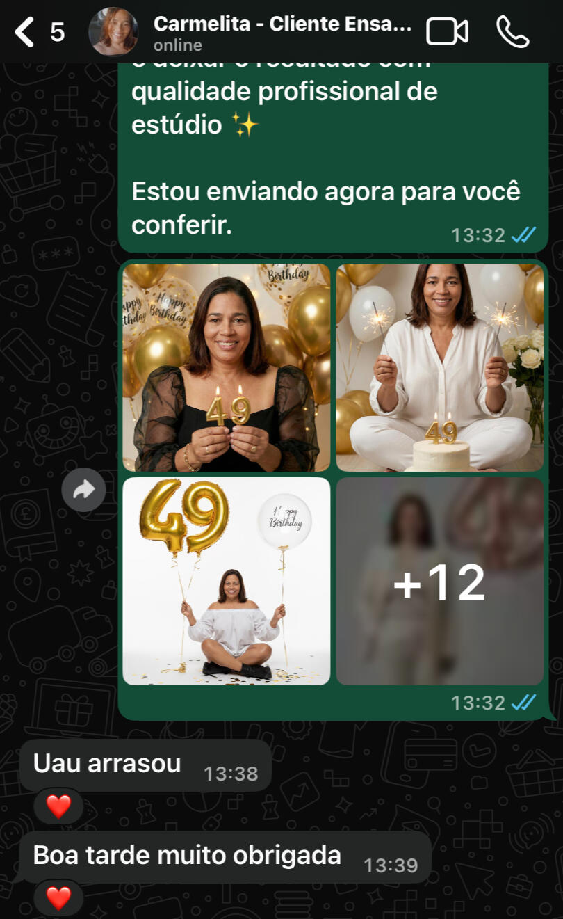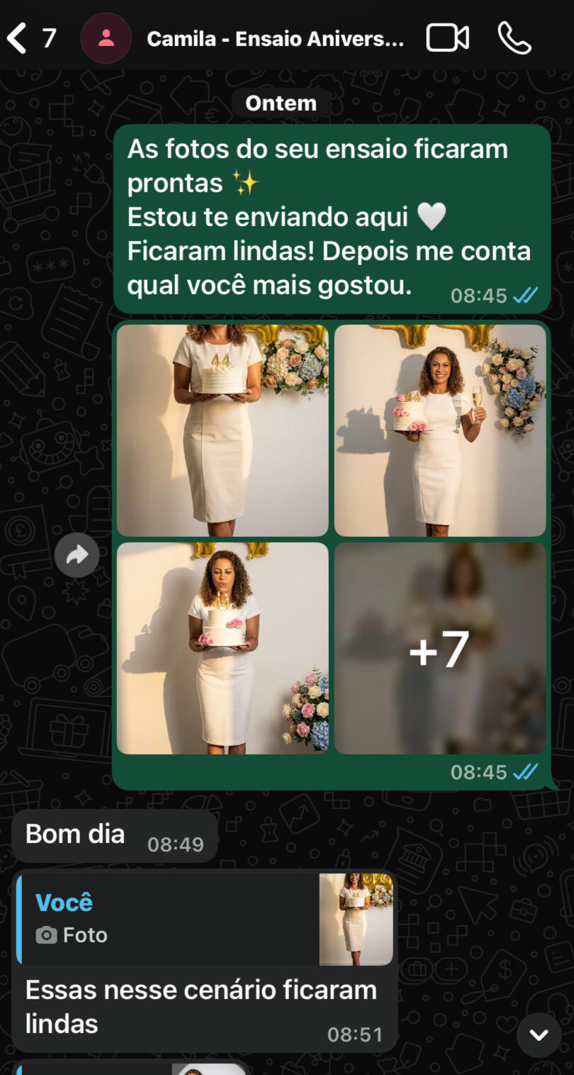 1️⃣ Você envia suas fotos pelo WhatsApp