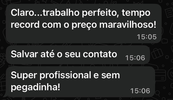 Atendo um número reduzido de pedidos para manter a qualidade profissional.